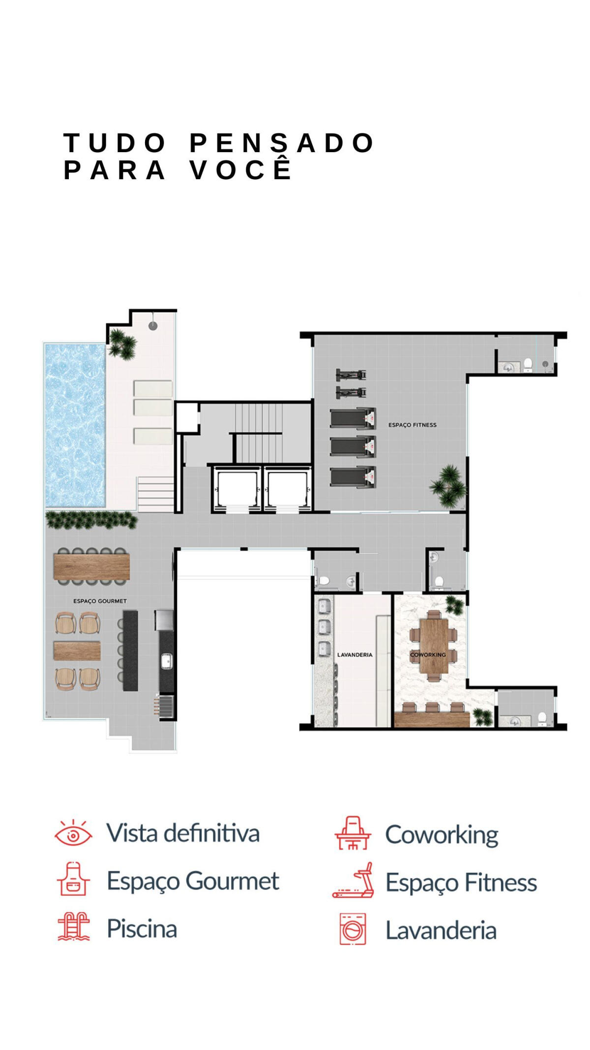 Diferencial raro: vaga de garagem incluída. Na cobertura: piscina com vista, academia Dynamo, área gourmet, coworking e lavanderia OMO. Localização prática: ponto de ônibus na porta, feira-livre em frente, farmácia e supermercado a poucos metros.